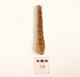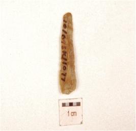 | Description / विवरण | A chert blade flake scars on the surface prominent bulb on the ventral side prepared platform on the proximal end and partly retouching on the cutting edges. |