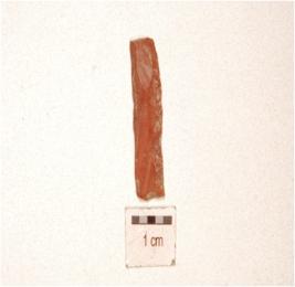 | Description / विवरण | A chert blade flake scars on the dorsal prepared platform on the proximal end and partly retouching on the cutting edges. |