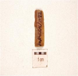 | Description / विवरण | A chert blade flake scars on the surface, prepared platform on the proximal end and partly retouching on the cutting edges. |