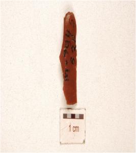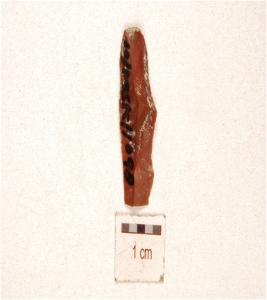 | Description / विवरण | A chert baked blade flake scars on the dorsal, prominent bulb on the ventral and retouching on one cutting edge. |