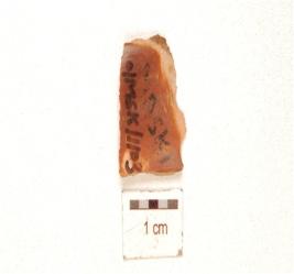 | Description / विवरण | A chert blade flake scars and corter on the dorsal, prepared platform on the proximal end retouching on the cutting edges. |