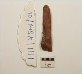 | Description / विवरण | A blade made on chert prepared platform on proximal end and use marks on working edges. |