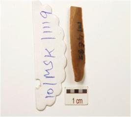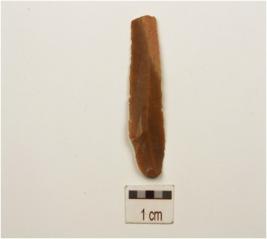 | Description / विवरण | A blade made on chert prepared platform on proximal end bulb on ventral, single ridge on dorsal, and triangular cross-section. |