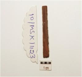 | Description / विवरण | A blade made on chert prepared platform on proximal end, double ridge on dorsal, and use marks on working edges. |