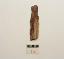 | Description / विवरण | A blade made on chert prepared platform on proximal end, single ridge on dorsal and use marks on working edges. |