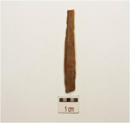 | Description / विवरण | A blade made on chert, prepared on proximal end single ridge on dorsal, and use marks on working edges. |