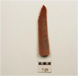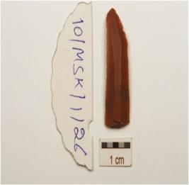| Description / विवरण | A blade made on chert prepared platform on proximal end, double ridge on dorsal and use marks on working edges. |