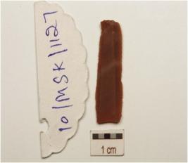 | Description / विवरण | A blade made on chert prepared platform on proximal end, double ridge on dorsal and use marks on working edges. |