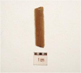 | Description / विवरण | A chert parallel sided blade with double ridge on dorsal, trapezoidal cross-section, use-wear marks on cutting edge and broken along both ends. |