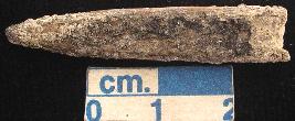 | Description / विवरण | Fragment of a bone arrowhead, damaged tip, rectangular section, blackish. |