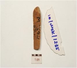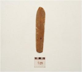 | Description / विवरण | chert parallel sided blade with two rides on dorsal diffused bulb on ventral, broken along at distal end, trapezoidal cross-section and use ware marks on cutting edges. |