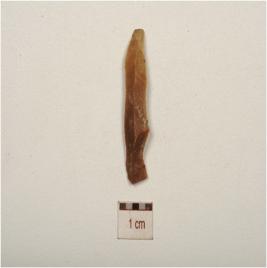 | Description / विवरण | A blade of chert bulb on the ventral and flake scars on the dorsal and retouched cutting edges. |