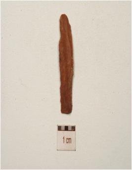 | Description / विवरण | A blade chert prominent bulb on the ventral, flake scars on the dorsal and retouched cutting edges. |