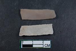 | Description / विवरण | Fragment of blade with two dorsal ridge and smooth surface.Other blade has one dorsal ridge. |