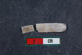 | Description / विवरण | Fragment of blade with positive bulb of percussion on its ventral side , three dorsal ridges and smooth surface.One of the blade has one dorsal ridge. |