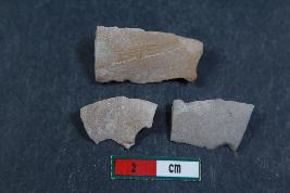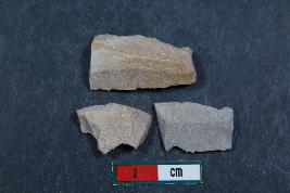 | Description / विवरण | Fragments of blade with two dorsal ridges and smooth surface.Two of the fragment has one dorsal ridge and have length 1.6 cm and width 1 cm |