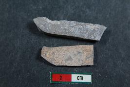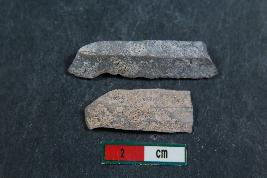 | Description / विवरण | Fragments of blades with two dorsal ridges in one of them and one dorsal ridge in one of them. They have rough surface. |