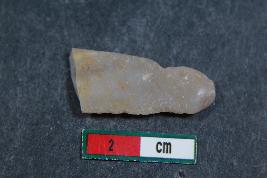 | Description / विवरण | A fragment of blade with two dorsal ridges with bulb of percussion. It has smooth surface. |
