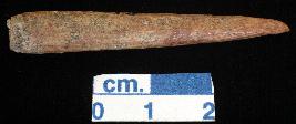| Description / विवरण | Fragment of a bone arrow head, pointed tip and circular section, off white colour, lower end is broken. |