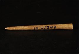 | Description / विवरण | A point made on bone , rough surface, half broken and round section. |
