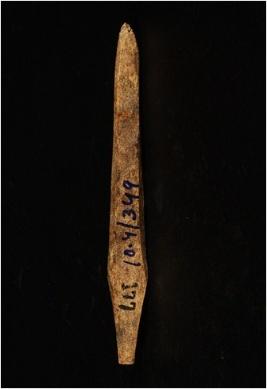 | Description / विवरण | A point made on bone with pointed tip and rough surface. |