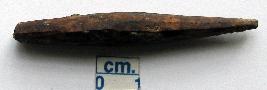 | Description / विवरण | A bone arrowhead, both ends has tips, but one side tip is damaged and another side is slightly damaged. |