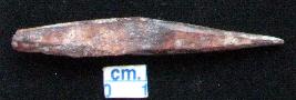 | Description / विवरण | A bone arrowhead, irregular circular, one tip is damaged. |