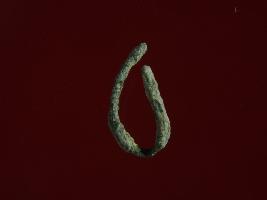 | Description / विवरण | Trench A-9, LxB-D 3.95 mtrs x 5.55 mtrs - 7.08 mtrs, B peg ZA9, Stratum Layer 21 This is a copper wire. It is folded. Hard patina with heavy deposition of dust and dirt. Appearance is of grey colour. |