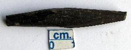 | Description / विवरण | A bone arrowhead, irregular circular, damaged on both tips. |