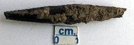 | Description / विवरण | A bone arrowhead, irregular circular, damaged on both tips. |