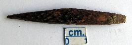 | Description / विवरण | A bone arrowhead, slightly damaged. |