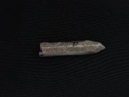 | Description / विवरण | Trench ZA-8, LxB D 3.10 mtrs x 4.20 mtrs 6.10 mtrs above peg ZB8, Stratum Layer 21 This is a stylus made of bone. It is broken at one side. Tip is pointed but little damaged. Surface is smooth. Appearance is of grey colour. |