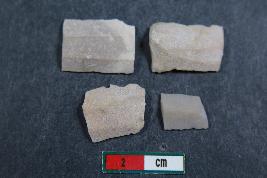 | Description / विवरण | Fragments of blades with two dorsal ridges in three of them and one dorsal ridge in one of them. They have smooth surface. |