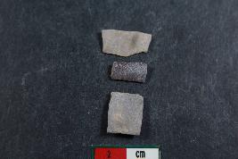 | Description / विवरण | Fragments of blades with one dorsal ridge . One of them is 1.1cm in length and 1.3cm in breadth.They have smooth surface. |