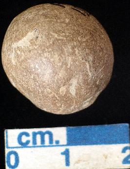 | Description / विवरण | A terracotta marble, dull red in colour, irregular round shape. |