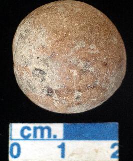 | Description / विवरण | A terracotta marble, dull red in colour, globalar profile. |
