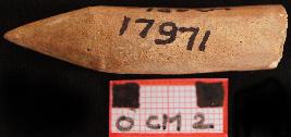 | Description / विवरण | A bone arrow head, off white in colour, round profile, sharp working edge, tag is broken and missing. |