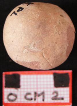 | Description / विवरण | A terracotta marble, dull red in colour, round shape, handmade. |