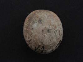 | Description / विवरण | Trench ZA-9, LxB-D 3.90 x 2.40 mts - 5.67 mts to 6.00 mts, B.peg ZA 9, Stratum-Pit 6 sealed by layer 22 This is a ball made of baked clay. It is round in shape. Many irregular marks on it. Surface is rough. Appearance is of brown colour. |