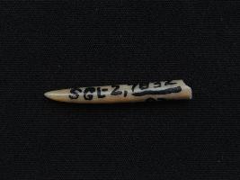| Description / विवरण | Trench ZA-9, LxB-D 3.60 x 2.95 mts - 5.22 mts, below peg 2A9 This is a stylus made of bone. It is pointed on one side. Many marks are present on it. Appearance is of cream colour. |