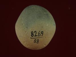 | Description / विवरण | Trench FX-3, LxB-D XXIX3 .60 mtrs x 2.60 mtrs - 3.40 mtrs Below peg XXVII3, Stratum Layer 15 This is a ball made up of baked clay. It is almost round in shape. Some irregular marks all over the surface. Appearance is of grey colour. |