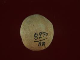 | Description / विवरण | Trench FX-3, LxB-D XXIX3 .00 mtrs x 2.60 mtrs - 3.40 mtrs Below peg XXVII This is a ball made up of baked clay. It is round in shape. Some irregular marks allover the surface. There is a depression at one side. It has a hole through it. Appearance is of brown colour. |
