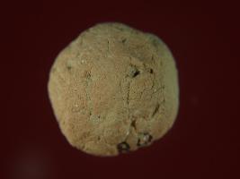 | Description / विवरण | Trench FX-3, LxB-D XXXI3 .25 mtrs x 3 mtrs - 4.45 mtrs Below peg XXVII3, Stratum Pit 2 sealed by Layer 1 This is a ball made up of baked clay. It is almost round in shape. Some irregular marks allover the surface. There is a depression at one side. It has a hole through it. Appearance is of brown colour. |