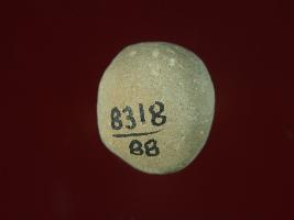 | Description / विवरण | Trench C-3, LxB-D XII2 .00 mtrs x 3 mtrs - 0.50 mtrs Below peg XXVII, Stratum Layer 3 This is a ball made up of baked clay. It is circular in shape. Some irregular marks allover the surface. There is a depression at one side. It has a hole through it. Appearance is of grey colour. |