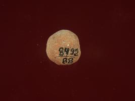 | Description / विवरण | Trench C-3, LxB-D XIII2 .80 mtrs x 1 mtrs - 2.64 mtrs Below peg XI2, Stratum Layer 21 This is a ball made up of baked clay. Almost round in shape. Surface is rough. Colour is brick brown in colour. |