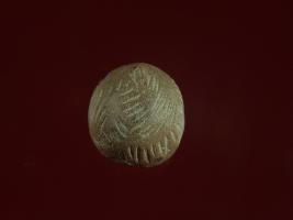 | Description / विवरण | Trench YA1, Qdt-2, LxB-D 9.75 mtrs x 3.45 mtrs - 2.49 mtrs Below peg A1, Stratum Layer 7 Ball is made up of baked clay. Used as entertainment object. Surface is rough and colour is brick brown. Round in shape. |