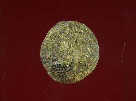 | Description / विवरण | Trench C-3, LxB-D XIV .00 mtrs x 5 mtrs - 3.28 mtrs, Stratum Layer 12 This is a ball made up of baked clay. Used as entertainment object or toy object. Brick brown in colour. Round in shape. Surface is rough. Some green fungus can be seen on object. |