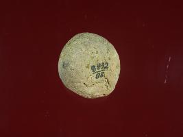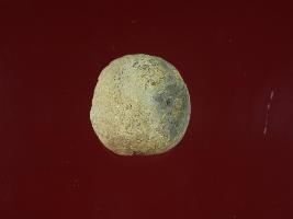 Trench C-3, LxB-D XIV2 .00 mtrs x 4 mtrs - 3.20 mtrs Below peg XI2, Stratum Pit 1 sealed by Layer 2 This is a ball made up of clay. Almost round in shape. Uneven surface and rough. Colour is grey brown.
