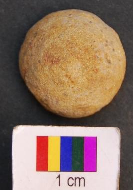 | Description / विवरण | It is fragment of a small stone ball, which may have been a sling ball. Its other half is missing. |
