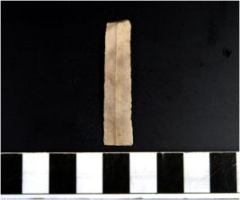 | Description / विवरण | A small blade of chert stone having ridge on the surface, triangular cross section, broken at one end rectangular in shape. |